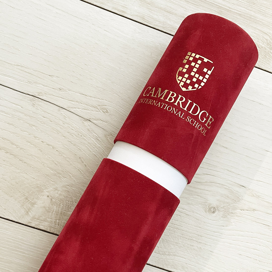 V naší nabídce je možné objedna i tubusy na diplom a další dokumenty už od jednoho kusu. V případě zájmu o potisk je to možné už od 10 kusů stejného textu. Potisk děláme razícími fóliemi ve zlaté a stříbrné barvě. Potahový materiál je použitý samet ( flokáž ) v různých barvách. Najčastěji se používá modrá, červená a zelená barva. Individuálně umíme použít i další barvy a speciální zákázkové rozměry.