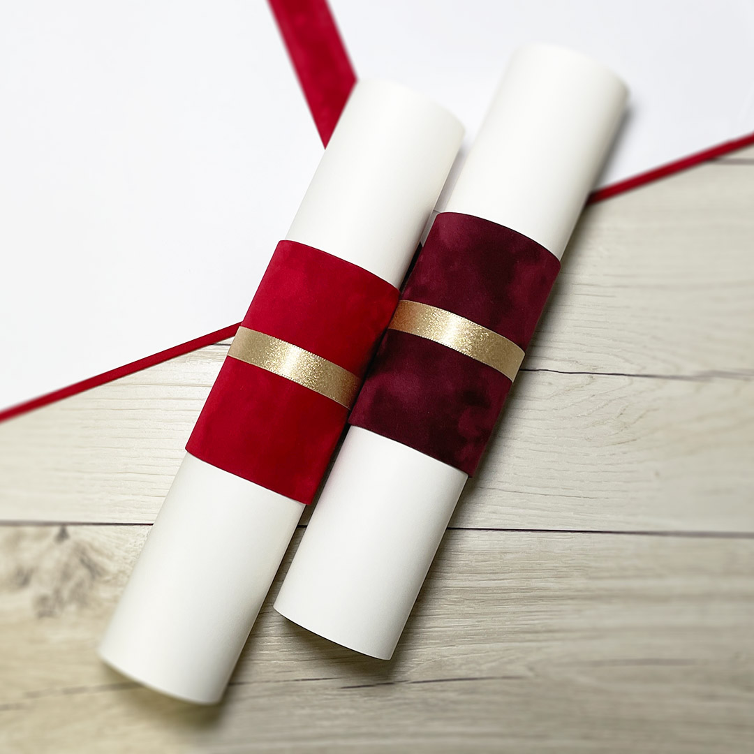 Potřebujete exkluzivní obal na dokument? Velmi vhodnou alternativou jsou obaly z luxusního sametu. Používají se obaly ve formě tubusu, krabičky nebo desek. Takto můžete zvýraznit hodnotu diplomu, darovací smlouvy, certifikátu, akciových listů a podobně. Typické použití tubusu je na univerzitách, které do něho vkládají vysokoškolský diplom. Sametové desky se často používají pro přepravu důležitých dokumetů a při jejich podpise. Například právní kanceláře, ministerstva, prezidentská kancelář, velvyslanectví a podobně. Tubusy je možné použit i jako obal na luxusní výrobek.